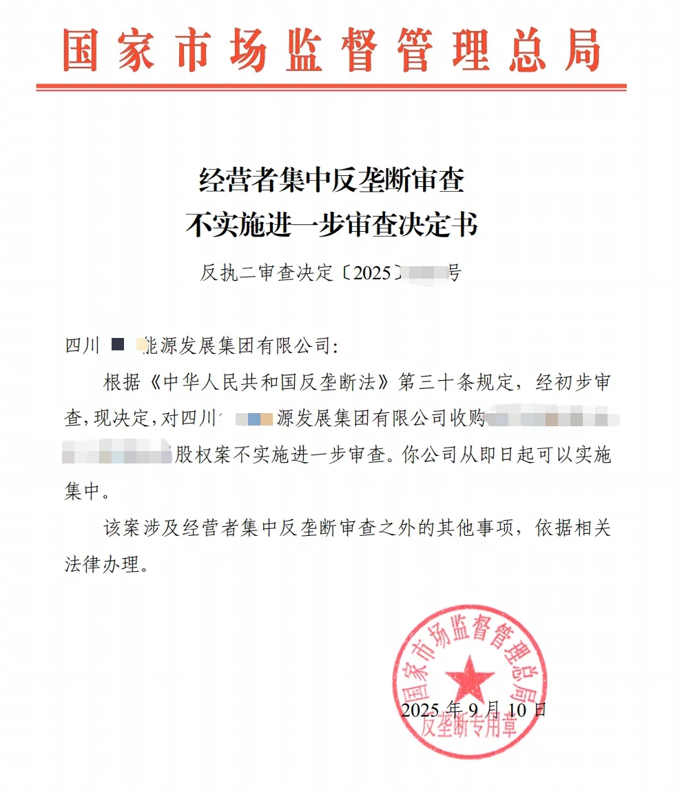 四川君合协助某能源集团完成经营者集中反垄断审查